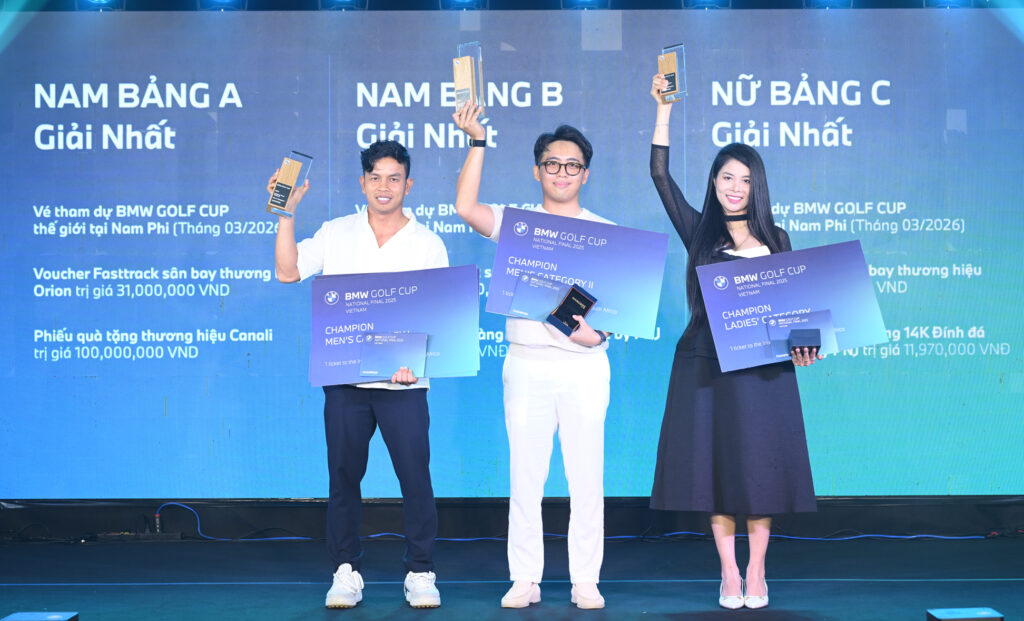 Sau một ngày tranh tài đầy cảm xúc, ngôi vị Quán quân đã gọi tên Lê Hữu Phước (bảng A), Lê Ngọc Bảo Khang (bảng B) và Mai Thị Trang (bảng Nữ) – ba golfer sẽ đại diện Việt Nam tham dự BMW Golf Cup World Final 2025 tổ chức tại Nam Phi đầu năm 2026.