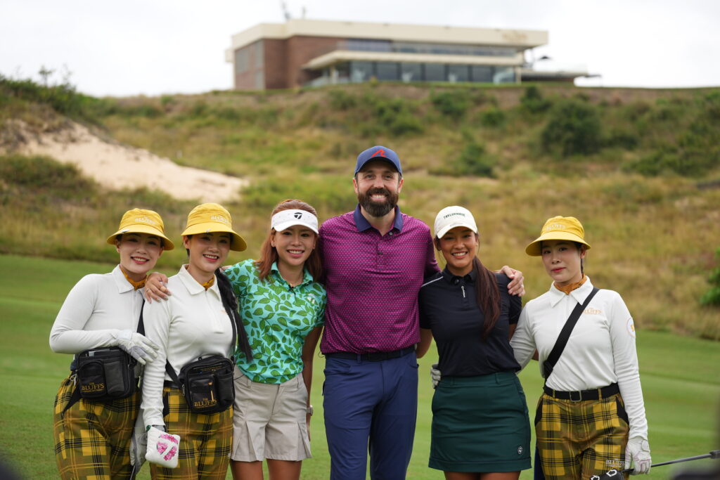 Rick Shiels chụp cùng golf Ngô Bảo Nghi (trái) và golfer Nguyễn Thảo My (phải) tại sân golf The Bluffs Grand Hồ Tràm