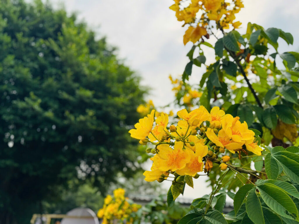 Không khí xuân hiện diện rõ nét khắp khuôn viên, nổi bật với những hàng mai vàng rực rỡ trải dài, tạo nên bức tranh xuân tràn đầy sinh khí. Từ khu vực lễ tân, check-in đến Nhà Câu lạc bộ (Club House) và các không gian công cộng, sắc vàng của mai hòa quyện cùng những chậu tùng bonsai bài trí dọc lối đi, mang đến vẻ đẹp trang nhã, đồng thời gửi gắm ý nghĩa may mắn, thịnh vượng cho năm mới.