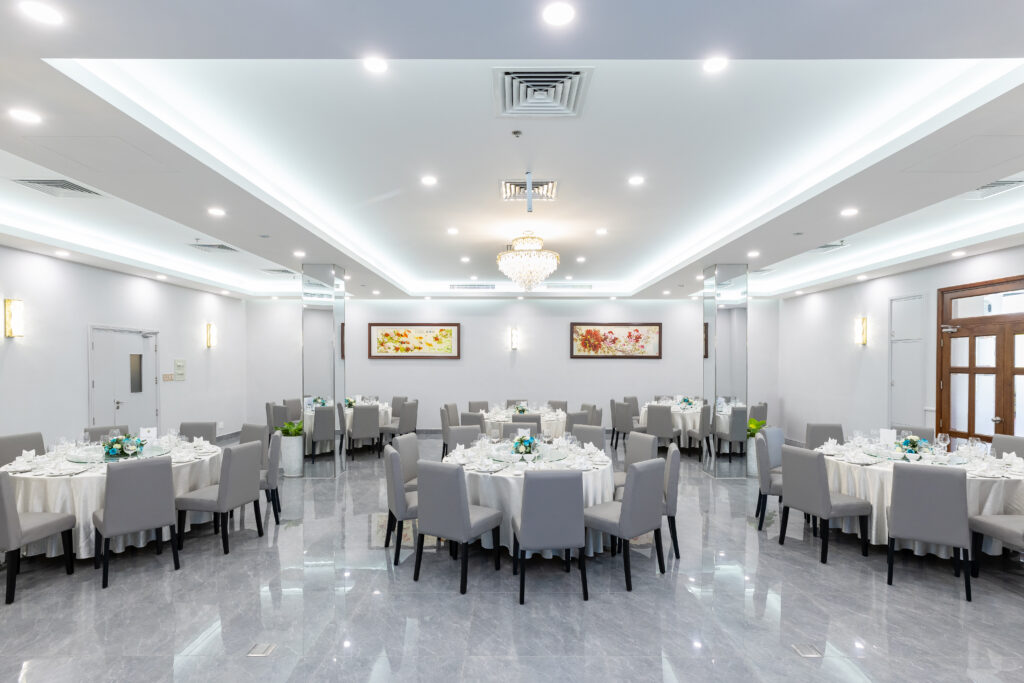 Không chỉ dừng lại ở trải nghiệm golf, Sân Golf Sông Bé còn được nhiều khách hàng lựa chọn nhờ hệ thống phòng tiệc và không gian sự kiện đa dạng, được nâng cấp với diện mạo mới sang trọng và khác biệt. Từ các phòng tiệc trong nhà ấm cúng như Art Gallery, The Library, Golden Bamboo, Eagles’ Lounge đến khu tiệc sân vườn sức chứa lên đến 1.000 khách giữa không gian xanh mát của sân golf, mỗi không gian đều được thiết kế linh hoạt, phù hợp cho các buổi gặp gỡ đầu năm, tiệc gia đình, hội họp doanh nghiệp và các sự kiện quan trọng.